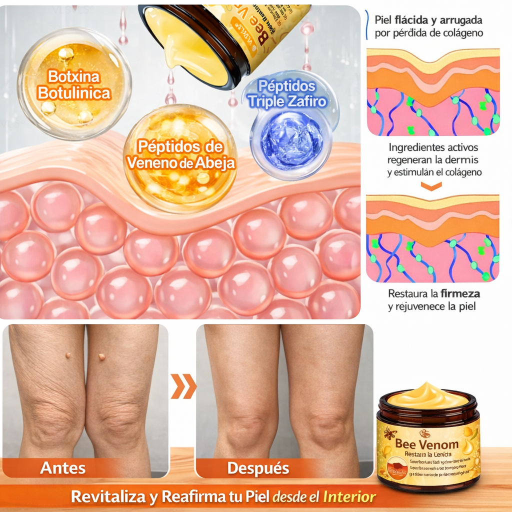 La fórmula con Apitoxina (veneno de abeja) ayuda a estimular la regeneración celular y favorece la circulación cutánea 🐝✨